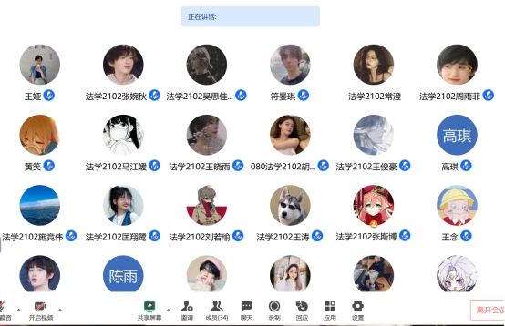 为培育学生的法学思维,拓展他们的阅读视野,法学2102班于2023年7月20日、8月6日以及8月26日通过腾讯会议举行了三次暑期班级共读活动。在组织委员张斯博的主持下,法学2102全体同学分阶段、分角色地参与读书活动,班主任王娅老师出席了每次活动。