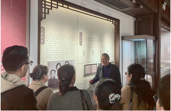 走进大院,独属于这座多进穿堂式建筑的通透明亮之感便瞬间予学员们以别样的感受。甘家大院始建于嘉庆年间,是我国大城市中现存规模最大、形制最完整的传统民居建筑群。甘苏老师以友恭堂、津逮楼和金陵甘氏家史陈列馆为导览主线,以甘氏的百年家史为讲解思路,一层一层为大家解密甘家大院的故事。站在文化世家的主宅大厅,学员们在甘苏老师的讲解下穿越时空,触摸友恭堂所代表的甘家家训精神;行至被烧毁重建后的津逮楼前,学员们随甘苏老师的介绍联想藏书楼的繁盛之况,体悟甘家深厚的书香文化底蕴;置身金陵甘氏家史陈列馆,学员们回溯甘家“德业有基”“家风礼仪”“文化传家”“雅艺之好”的四部发展史,感受甘家丰富厚重的百年历史。走出家史陈列馆,走进现实,本次文化之旅便进入了尾声。