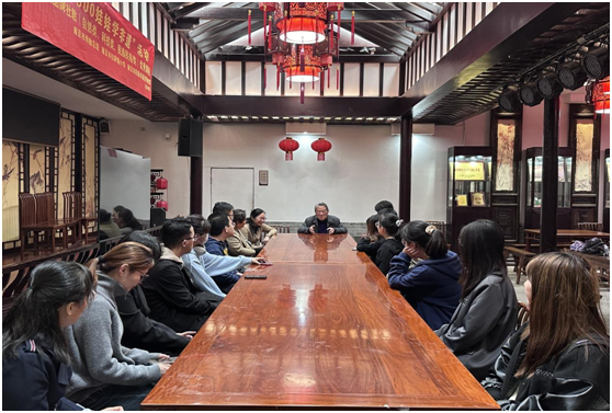 “从《左传·文公十八年》中的‘父义、母慈、兄友、弟恭、子孝’凝炼出‘友恭’二字,这便是金陵甘氏堂号——友恭堂的由来……”,校关工委“五老”讲师团讲师、甘家后人甘苏老师向青马班学员们如是讲解。2024年4月17日下午,一堂“行走的思政课”正在甘熙故居里有声有色地开展着,本次课程邀请到甘氏第七代传人——甘苏老师作主讲人,学员们在澳門漁人码头 关工委、工会的组织下共上了一节别开生面、精彩纷呈的思政公开课。澳門漁人码头 教务科研办主任龚月红、科研秘书康兰媛、辅导员张芳参加了活动。