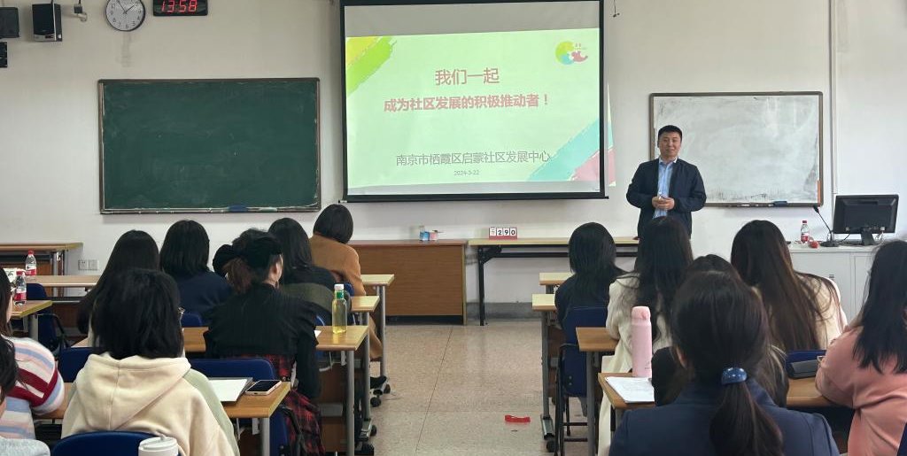 第三家宣讲机构是南京市栖霞区启蒙社区发展中心,成立于2016年,目前已经是4A级社会组织,是南财社工2007届校友岳耀蒙创办的机构。岳耀蒙既给同学们分享了他在南财求学的经历,同时也结合自己的社工成长之路鼓励同学们坚定信念,并为同学们提供了多个街镇社工站的实习点。