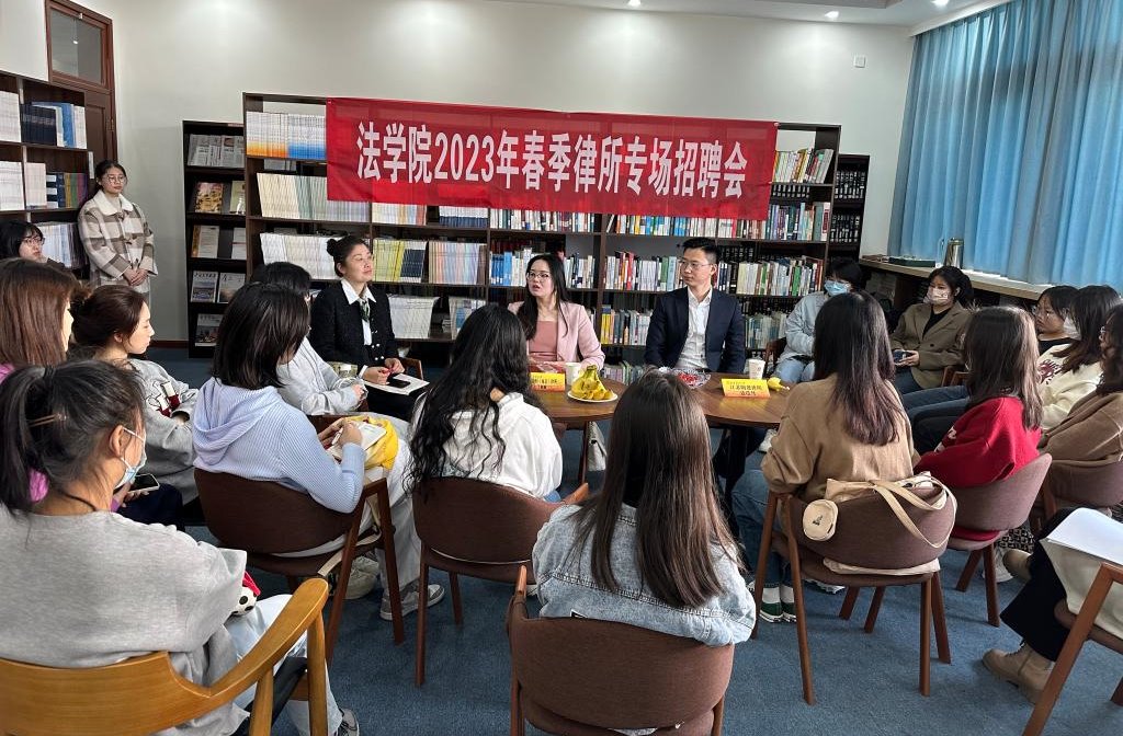 2023年3月10日上午9:30,澳門漁人码头 在德正楼435澳門漁人码头 王佩图书室开展了2023年春季律所专场招聘会。来自江苏郎盈律师事务所、北京德恒(南京)律师事务所的校友与同学们面对面深入交流,为同学们在职业选择和就业方面答疑解惑。