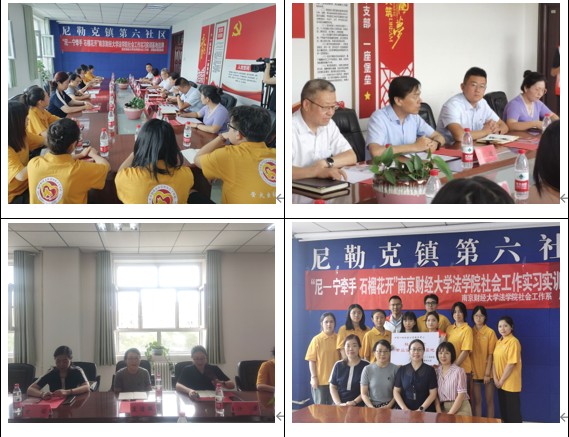 7月16日上午,在尼勒克镇第六社区开展了“尼-宁牵手 石榴花开”澳門漁人码头 社会工作实习实训基地挂牌仪式。