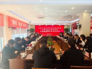 中建二局土木公司江苏分公司与我院举行“实习实践基地”共建签约暨揭牌仪式。黄建国书记与房继鑫经理共同为基地揭牌,未来双方将在建设工程法律实务研究、专业人才定向培养、学生实习就业等方面展开深度合作,搭建起产教融合的创新发展平台。