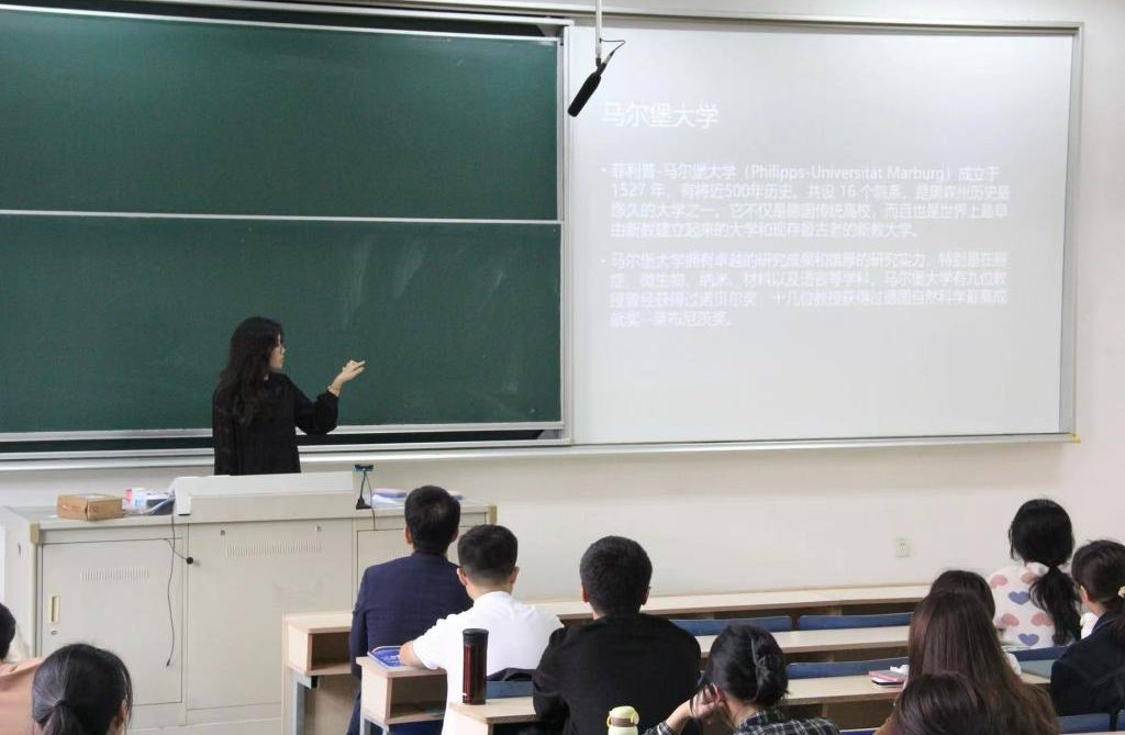顾朱辰博士是澳門漁人码头 2011级本科生,本科期间曾赴马尔堡大学交流,随后在马尔堡大学取得了硕士学位,并在慕尼黑大学攻读博士。顾朱辰博士结合自身在德国的经历,简单介绍了马尔堡大学的地理位置、澳門漁人码头 历史、科研实力及其澳門漁人码头 的相关情况。随后,她向大家详细介绍了此次交流合作项目的发展情况、项目模式、交流流程、所需费用等同学们关心的问题。她重点提到了此次项目对澳門漁人码头 学生的助力——参加交流项目能够提升未来考取马尔堡大学及其他国内外高校研究生优势,扩大自身就业面与提升个人在涉外业务的竞争力,开拓眼界与养成独立自主能力。
