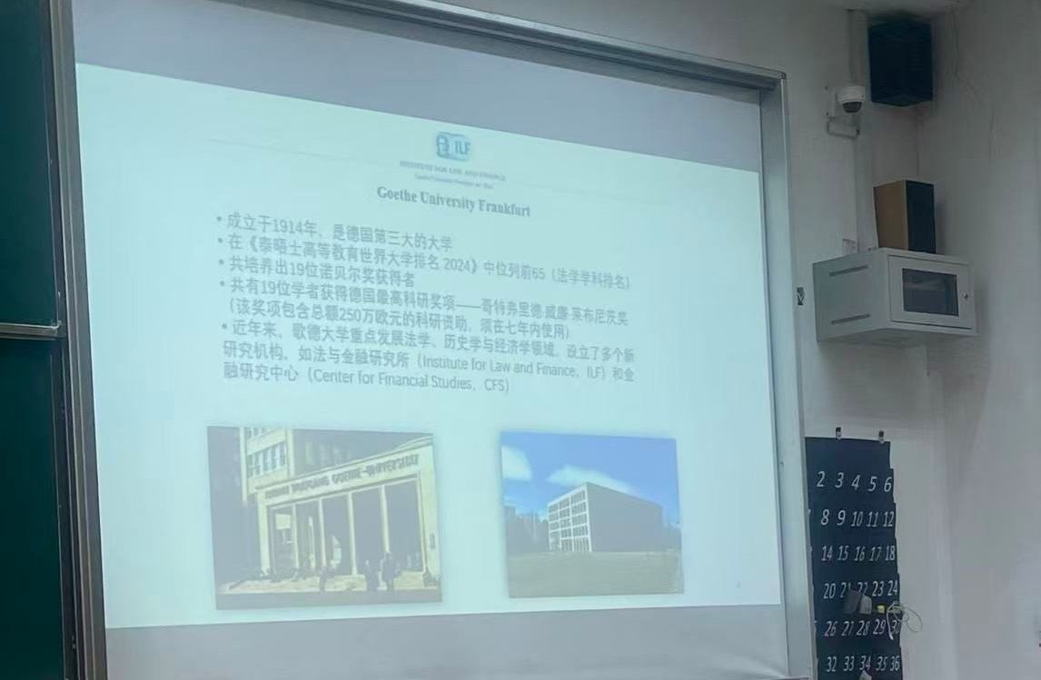 12月19日下午,澳門漁人码头 教师顾朱辰博士在德业楼101教室宣讲了两个国际交流项目。一个是德国马尔堡大学法学专业本科生交流项目,另一个是德国法兰克福大学法律与经济澳門漁人码头 “国际银行、证券与金融法法学硕士”项目。马尔堡大学法学项目发端于2010年,至今已有15年,澳門漁人码头 法学专业50多名本科生通过这个项目走出国门。法兰克福大学法学硕士项目今年签约,面向澳門漁人码头 法学专业和经管类专业的本科四年级学生及在读研究生,每年招收5人。