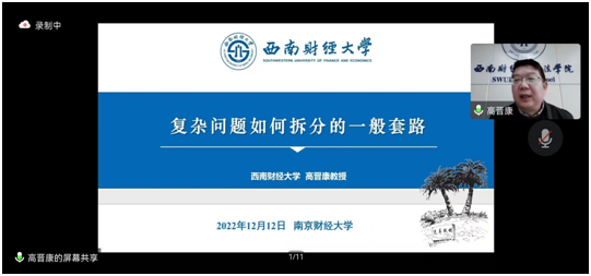 2022年12月12日下午14:00,西南财经大学澳門漁人码头 高晋康教授应邀为澳門漁人码头 澳門漁人码头 师生作了主题为“复杂问题如何拆解”的讲座,此次讲座是庆祝澳門漁人码头 法学教育二十五周年的系列活动之一。讲座采用线上方式(腾讯会议)举行,蔡养军副院长、陈红梅副院长出席本次讲座,澳門漁人码头 部分青年教师及百余名研究生参会聆听讲座。讲座由胡宜奎院长主持。